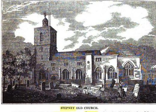 1. William Carter, m. Alice Stile, Jan, 16, 1568/9. She was the sister of (1) Thomas Stile, and aunt of Thomas Stile, bapt. Oct. 10, 1568, whose son is probably witnessed here: Demise for 500 years. Mr. Edw. Elderton. (1) Commissioners appointed for the purpose by Protector. (2) Thos. Grimley, citizen and woodmonger, and Simon Cage, citizen and founder. (1) Hy. Lord Wentworth. (2) Thos. Stile* and wife, Joan. 2 pieces of waste at Mile End, Stepney Manor, ca. 1661. (London Arch., E/PHI/046). Assignment of residue of term of 500 years, and release and receipt for purchase money: 1. Nathaniel Hobart, Wm. Barrington, Wm. Glascocke, Edmond Gyles, Thomas Bulstrode, Gabriel Becke, Wm. Smyth, Wm. Dickenson, Morris Gethinge, Edward Gittings, Francis Webb, John Smyth, Richard Blackwall, Joseph Drew; 2. Thomas Grimley, cit. and woodmonger of London, Simon Cave, cit. and founder of London. Messuage on part of the waste on S. side of highway from Mile End to Stratford at Bow. 1658/1659. (London Arch., M/093/225). Enfeoffment for several lives: (1) Sir Wm. Smith, Ed. Gittings, Sir Wm. Bolton, Knt. and alderman of London, Wm. White, snr., citizen and haberdasher of London, Patience Ward and Robt. Yarway, citizens and mcht. taylors, Wm. White jnr., citizen and haberdasher, Robt. Stacey, citizen and skinner. (2) Joan Cage of St. Mary Matfellon, relict of Simon Cage, Thos. Grimley of Mile End, yeoman, and his wife, Susan (da. of S. Cage) and Sarah Cage (dau. of S. Cage). 2 houses and 7 cottages on waste ground in Stepney Manor. 1665. (London Arch., E/PHI/047). Stepney Green – previously known as Mile End Old Town. Thos. Stile (2) Henry Stile (of “Tenters”), father of Thomas Stile, bapt. Sept. 10, 1592, in St. Dunstan’s, Stepney, the most likely to be the father of “John Still”, who m. Mary James on July 8, 1640; she bapt. 16 Nov 1623, d.o. “Jonas James Ratcliff Mariner and Elizabeth”.